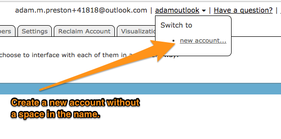 4.) In the pop-up window, click on the Create Account button in the upper right-hand corner and register an account using the same email address you used for Surveda. When finished, click the Create Account button. An account confirmation email will be sent to this email address. Once you have confirmed your account, fill out the New Account form below. Do not include spaces or special character in your account name.